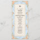 Transport your guests to a romantic era with this Rococo-inspired design featuring watercolor florals and cherubs. Perfect for a fairytale garden reception.This design features a lush, romantic composition centred around a soft, light blue background simulating a printed marble texture. The borders are adorned with an ornate, faux gold filigree frame in a baroque style, intertwined with watercolor illustrations of peach roses, cream daisies, and sage green ferns. At the top, whimsical cherubs are depicted playing violins, flanking a classic serving cloche illustration. The text is arranged in a traditional hierarchy using elegant charcoal serif typography and a flowing handwritten calligraphy header for a sophisticated finish.This is a flat printed image with a faux gold foil and marble effect, not actual raised material or metallic leaf.