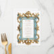 This elegant wedding menu features an ornate vintage rococo style pastel blue and gold frame. Customize the decorative gold-colored text with your menu details.