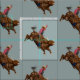 Inspired by vintage western art, this rodeo cowboy is wrangling a bucking bull. Change the background colour in the custom section to compliment your project.