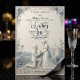 Announce your timeless love story with an elegant, traditional aesthetic featuring a beautiful dusty blue and cream palette for your formal celebration.This design showcases a classical romantic aesthetic centred on a beautifully illustrated proposing couple motif. The visual hierarchy draws the eye from the delicate floral corner borders—composed of roses, daisies, and botanical leaves—down to a man kneeling with a ring before a woman in an elegant gown. The backdrop depicts a classical chapel and cobblestone path set against rolling hills, all rendered in a cream and off-white base with dusty blue accents. The layout balances formal navy blue calligraphy script with clean modern sans-serif numbers and classic serif lettering.This is a flat printed image with a faux 3D bas-relief style and embossed effect, not actual raised material.