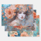 Romantic floral portrait decoupage paper set – 3 designs for furniture flips, wall art, junk journalling, and gift wrap projects. The Vintage Romantic Floral Portrait Decoupage Paper Set features three striking designs, including an enchanting female portrait framed by lush flowers. Perfect for feature panels on furniture, gallery wall art, junk journals, wedding décor, and gift wrapping. A stunning choice for mixed media artists who want a focal point in their work. Copyright Hautegraphique.
