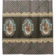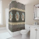A beautiful shower curtain with modern stripes, romantic lace and a beautiful vintage woman.