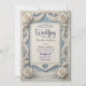 Vintage Romantic Neoclassical Blue 3D Rose Invitation