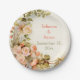 Vintage romantic painting of roses wedding paper plate that features a bunch of English rose flowers in pink, peach and coral with green leaves. This elegant and romantic nature inspired floral design is based on a vintage fine art painting and carries a feel of the English romance and elegance. It is a customisable template pefect for a spring or summer garden wedding, bridal shower, reception, engagement, or anniversary party.
