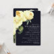 Stunning and sophisticated wedding invitation, featuring a vintage botanical illustration of a yellow rose over a blue background.