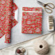 Red and white rose flower pattern with green leaves on a vibrant red background. Vintage floral pattern presents beautifully on gift wrapping paper.
