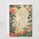 An enchanting floral design inspired by old-world botanical art, featuring lush antique roses, deep greenery, and warm vintage textures. The ornate frame and garden illustration create a romantic, heirloom-worthy look perfect for couples who want a classic, storybook aesthetic. Elegant typography sits beautifully against the weathered parchment background, making this a timeless choice for a refined and nature-loving celebration.
