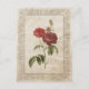 Retro postcard featuring a vintage botanical illustration of red roses with antique French style embellished frame and crumpled old paper texture.