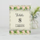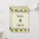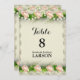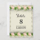 A vintage wedding table numbers with an Ivy, string of lights, lace and pink roses. The table numbers are part of a complete set.
