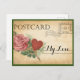 A lovely romantic rose valentine postcard on vintage warm toned paper for the love of your life with a spot to change the name of your love on the To: line