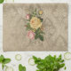 Richly-textured design featuring a spray of vintage roses in yellow and pink with delicate engraved floral ornament on a distressed vintage linen toned damask background. Image of roses is optional and may be repositioned, resized or deleted.
