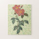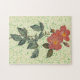 My original digital artwork is featured on the pretty puzzle, consisting of an impressionistic green leaf pattern in the background with a vintage illustrated rose bunch flowers in front. The size of this unique puzzle is 11” x 14”, and in the ‘challenging’ category, however you may size up or down as desired.