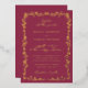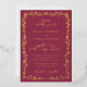 Elegant floral line art wedding invitation with a burgundy colored, rustic chinoiserie ornamental frame design, elegant vintage inspired handwritten font, and real foil.
