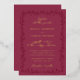 Elegant floral line art wedding invitation with a burgundy colored, rustic chinoiserie ornamental frame design, elegant vintage inspired handwritten font, and real foil.