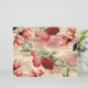 Pink and deep red vintage roses with ephemera script and advertisement. Pink blush and cream background.