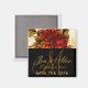 Vintage Roses Save the Date Magnet with monogram initial, bride and groom names and wedding date in red, brown, gold and black colours. Custom Save the Date with Names Magnet. Perfect for a fall wedding or vintage wedding
