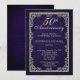 Elegant Vintage Royal Blue Wedding Anniversary Invite