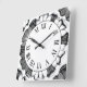 The ornate design on this modern, designer wall clock features a vintage rose motif in black and white. Roman numerals complete this clock's elegant and modern look.