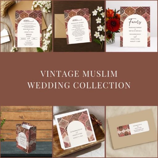 A beautifully crafted vintage Moroccan-inspired Islamic wedding invitation featuring elegant geometric motifs and terracotta tones that evoke warmth and tradition. The graceful Bismillah in Arabic adds a blessed touch, making the announcement meaningful and spiritually rich. Perfect for a Nikah or Walima ceremony, this timeless design blends traditional Islamic aesthetics with rustic fall hues for a charming and sophisticated look. Whether used as a Save the Date, Nikkah invitation, or Islamic wedding reception card, this personalised invitation offers a memorable and heartfelt way to invite loved ones to celebrate your special day.