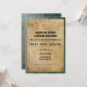 Vintage Rustic Bicycle Wedding Invitations. A great set of bicycles set on the path of LOVE for the bride and groom to be. Set apon a turquoise and grey wooden planked background with parchment paper texture on top that holds all your wedding day details in poster like style. Parchment paper holds details of overplayed flourishes on the tops and bottoms.