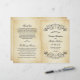 Decorative black swirls and flourishes frame this elegant vintage typography wedding ceremony sheet program design. The rustic ivory background is printed with a textured aged parchment paper appearance. Personalise the custom text for your bridal party, ceremony information, and thank you message. Note: these text weight paper programs arrive flat and require folding to assemble.