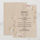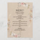 Beautiful vintage boho rustic wedding menu card featuringdusty pink roses and wildflowers accents sophisticated vintage background. Perfect for wedding receptions and dinner parties. Coordinates seamlessly with our Vintage Rustic Boho wedding invitation suite. Fully customisable with your menu items and wedding details. Premium quality wedding stationery.