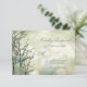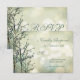 This wedding response card has tree branches and blossoms with light sparkles or bokeh photography effect in the background in earth tones, blue, grey, green, and tan colours. These are great for rustic weddings and nature themed weddings.