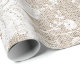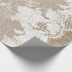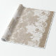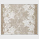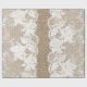 Rustic country elegant wrapping paper on beige faux burlap featuring a beautiful floral patterned white lace with border.