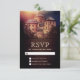Elegant RSVP card featuring a beautiful castle against a rustic barn wood background.