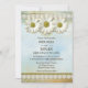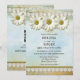 Wedding invitation featuring white daisies on a rustic painted background with wood and lace. Beautiful for an outdoors or summer wedding.