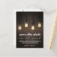 Vintage Rustic Lights Chic Save The Date Cards - features industrial or vintage dangling lights over a barn wood background. See the entire matching design collection on this page.
