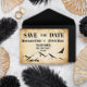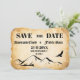 Decorative black swirls and twirls this elegant vintage inspired wedding save the date announcement design perfect for the discerned bride and groom.
