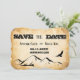 Decorative black swirls and twirls this elegant vintage inspired wedding save the date announcement design perfect for the discerned bride and groom.