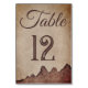 Vintage rustic paper brown mountains wedding table number