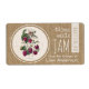 Modern rustic horizontal label for your "home made" jams with a french vintage illustration of raspberries. All is customisable (images and texts). You can easily change images and texts (font, colour, size and position) by clicking the personalise or customise button. Available in vertical personalised label and large round sticker labels too.
