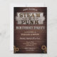 Amaze your guests with this rustic birthday party invitation featuring a beautiful brushed metallic design against a rustic wood background. Simply add your event details on this easy-to-use template to make it a one-of-a-kind invitation. Flip the card over to reveal rustic gears on the back of the card.