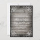 Vintage Framed Rustic Wood Country Wedding Invitations with a distressed grey barn wood background with swirl flourish white ornate frame design around it. These are great for country western weddings, vintage weddings, and rustic country weddings.
