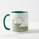 Nautical sailing artwork from antique tiles show sailboats on calm waters in greens and pink. You pick the mug size and colours or add your own text.