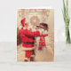Retro card with Santa Claus fixing Mr. Snowman's hat.