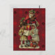 Santa Claus is having great fun in this reproduction of a vintage Christmas card. He's playing a violin as the two children in front of him are holding a candle, reading the sheet music, and singing along with a wonderful Christmas song. At their feet is a bag full of Christmas goodies. Victorian-era Santa Claus was often depicted interacting with children, where these days, Santa only comes when the children are tucked tight in their beds. The vintage Santa card is from the mid-1800s, when Santa was depicted by illustrators as a bit thinner. In this wonderful image, Santa has a red cloak, but a green hat, but not the pointy hat we've become familiar with in this era -- instead, it's surrounded by leaves.
