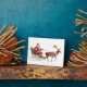 Illustration of vintage santa claus in the snow with raindeer in watercolour