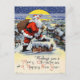 Vintage Santa Claus on Snowy Rooftop Postcard | Classic Merry Christmas & Happy New Year Greeting.