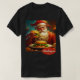 Vintage-style advertisement with Santa Claus eating a hamburger or two. December 21st is National Hamburger Day!