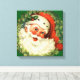 Canvas print with a retro image featuring a smiling happy Santa Claus surrounded by a pine wreath with a sprig of holly in his cap.