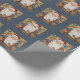 Cute Slate Blue Santa Claus Bluebirds - art deco whimsical Christmas wrapping paper.