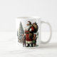 Vintage Style Santa with a bag full of goodies with two kids anxiously awaiting gifts. A favourite mug for coffee or some hot chocolate on a cold night.
