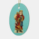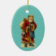 Sweet, vintage picture of Santa with cane, sack and toys, is featured on this oval ceramic ornament. Back of ornament reads, "Wishing you an old fashioned Merry Christmas". Lovely ornament to hang on your tree or give as a gift too!