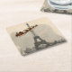 A vintage Santa and his sleigh full of toys flies past the Eiffel Tower from an antique French postcard on this lovely and unique paper party coaster. Many matching items and other Paris Christmas designs are available in my Zazzle store.