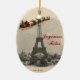 "Joyeuses Fêtes" Happy Holidays in French, appears on this ornament with a vintage Santa and his sleigh full of toys flying past the Eiffel Tower from an antique French postcard. Personalise the back with year and/or name for a special gift or keepsake ornament for your own tree. A matching Christmas card is available in my Zazzle store. There are Rome and London versions of the ornament and card as well.
