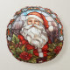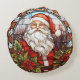 Vintage Santa Poinsettia Stained Glass Holiday Round Cushion